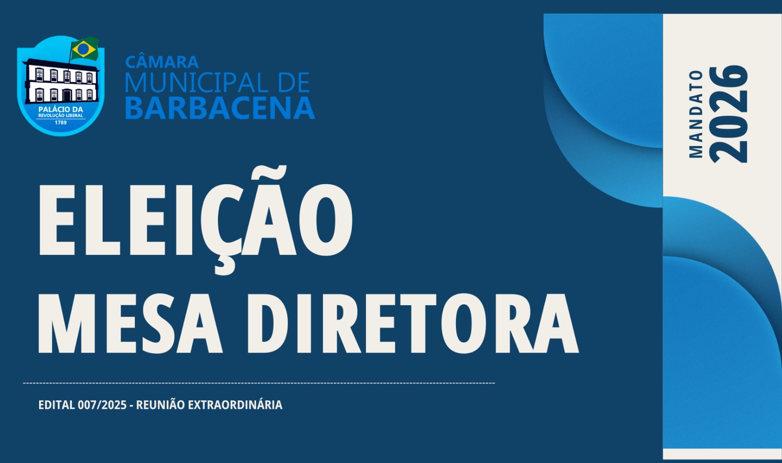 O objetivo exclusivo da sessão é a eleição da Mesa Diretora da Câmara para o exercício de 2026, quando serão definidos os novos dirigentes da Casa Legislativa.